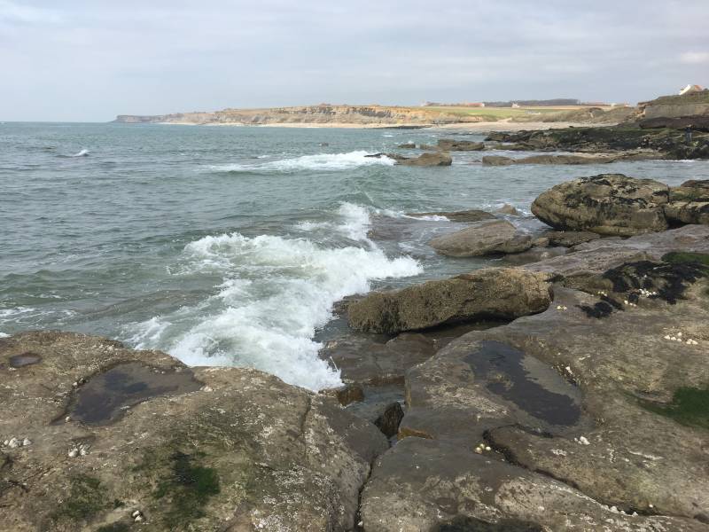 Zicht op de scherpe rotsen en kliffen bij Audreselles (Oderzele), iets ten noorden van Bonen (Boulogne)